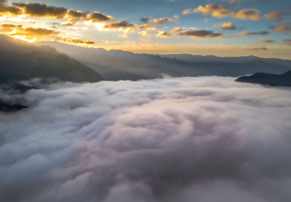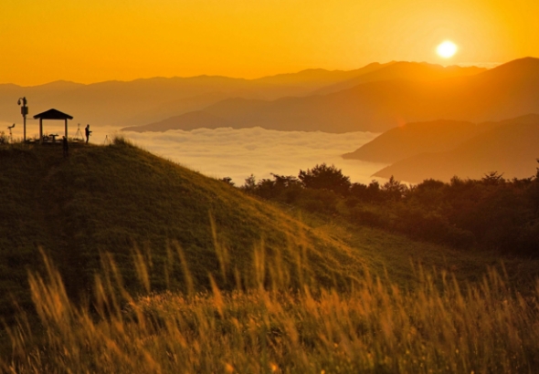 空に浮かぶ雲の原野。高原の先に広がるその景色は、まるで天に浮かぶもう一つの大地のよう。思わず言葉を失う静けさの絶景。