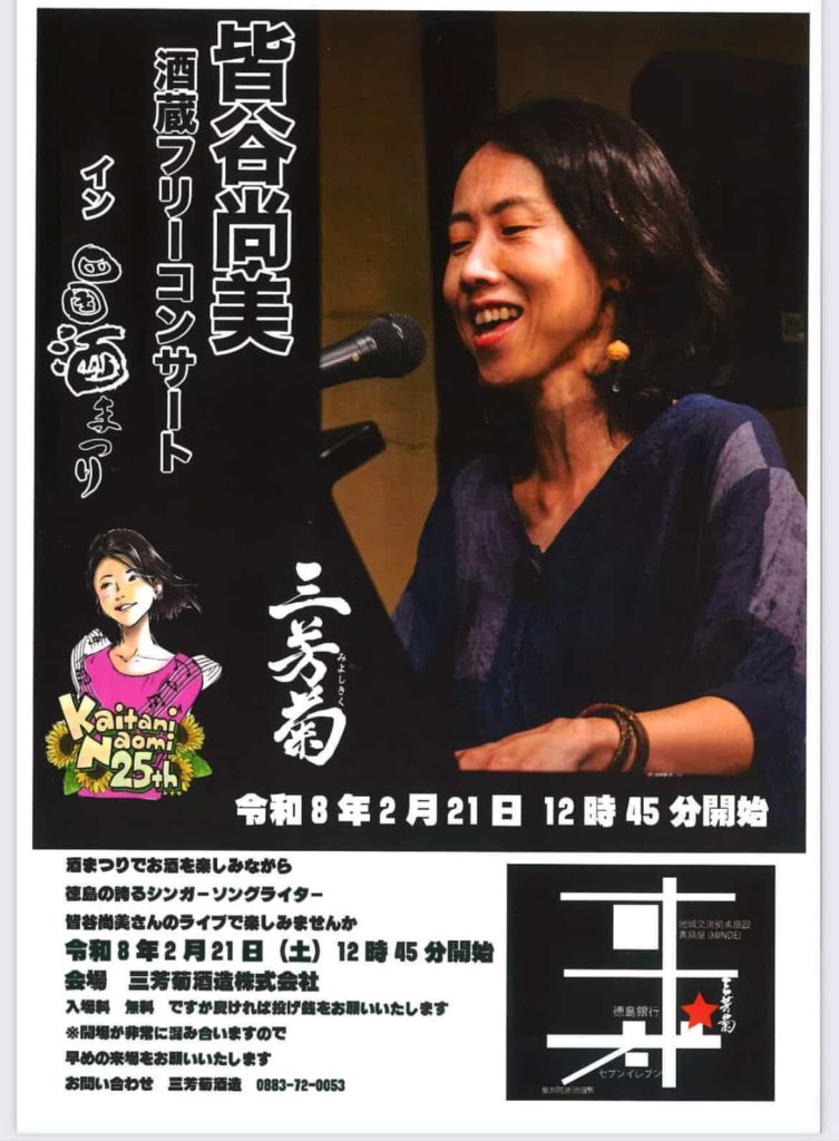 三芳菊酒造にて『皆谷尚美 酒蔵フリーコンサート イン四国酒まつり』が開催されます。