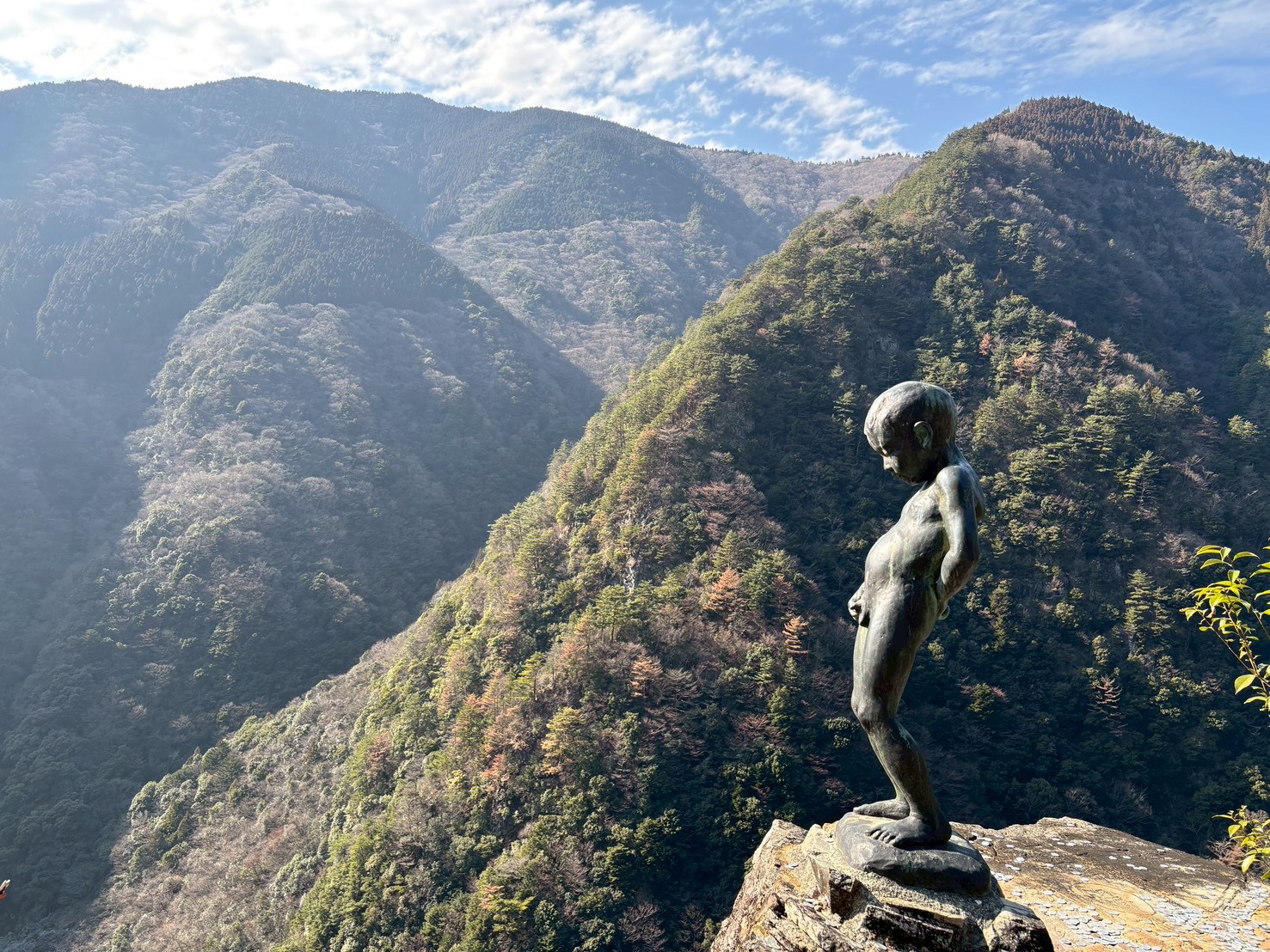 ひの字渓谷から5分ほどのホテル祖谷温泉でバスは停まり、「小便小僧」の像まで約10分徒歩で向かいます。
