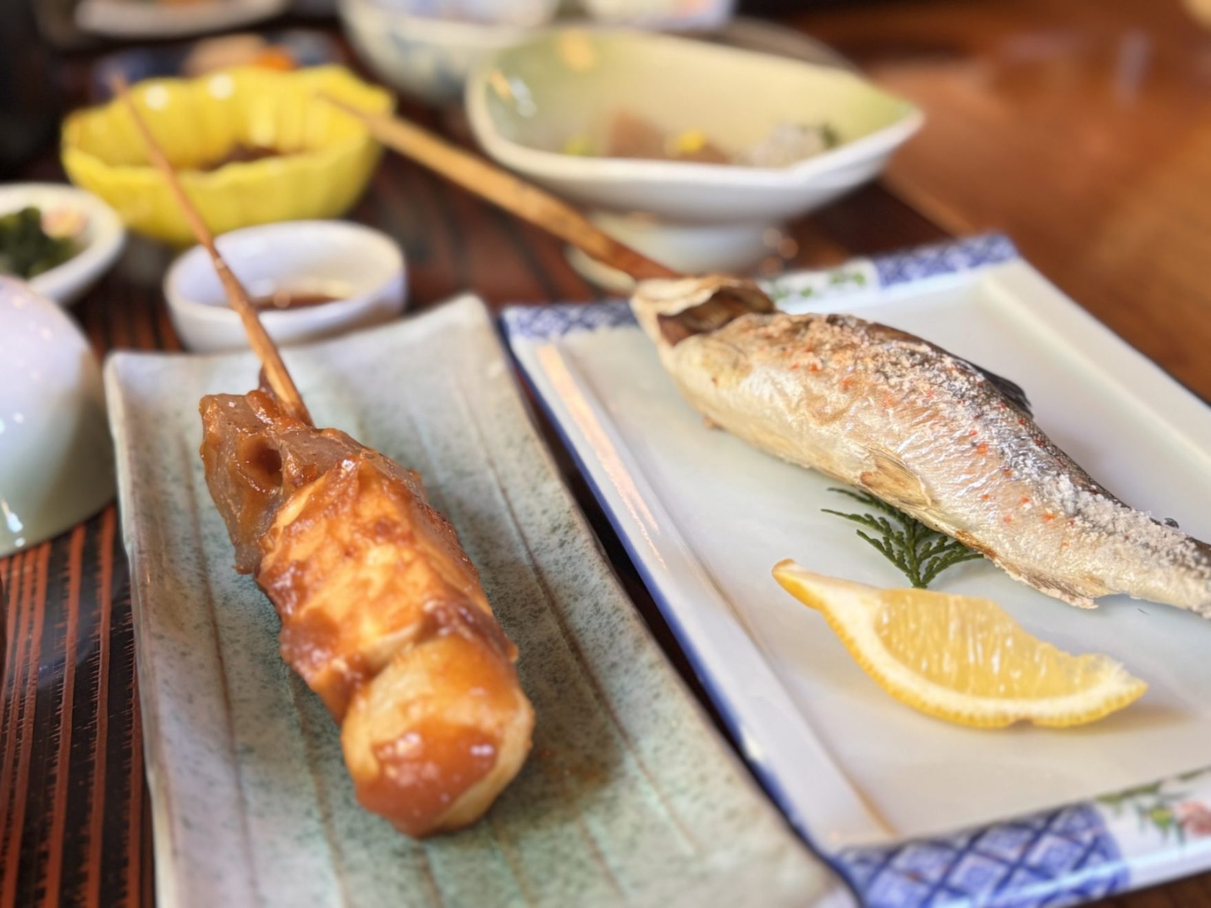 筆者は初めてでこまわしを食べたのですが、1番上の丸いものはそば団子でしょうか、もっちりとした食感でゆず味噌との相性が抜群で美味しかったです。