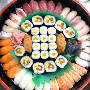 平成3年に創業した池田仕出しセンターは、鮮魚の販売の他に、仕出し料理・お弁当・宴会料理・寿司のテイクアウトまで幅広く対応しています。毎朝市場で競り落とした旬の魚を仕入れ、フグの取り扱いも可能。また、肉寿司に使用する肉は国産を使用しており、養牛場へ直接足を運び仕入れています。定番のお弁当やオードブルの他、予算や好みに応じた料理にも対応可能。地域の行事や団体での利用、冠婚葬祭などの際にも広く利用されており、配達も(※団体利用に限り)相談可能です。また、店内には宴会場も完備されており、団体での会食にも対応可能。地域の集まりや職場の懇親会などでの利用もおすすめです。節分の時期には市場仕入れの鮮魚をふんだんに使った海鮮恵方巻や、土用の丑の日にはウナギの販売など季節に応じての販売もあります。確かな目利きと丁寧な仕事で、地元に愛され続ける三好市唯一の魚屋です。